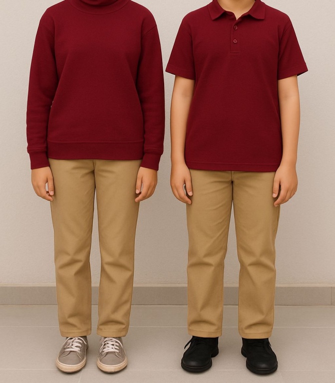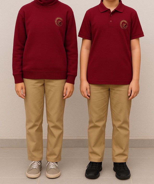 - Kışlık: Bordo renkli, uzun kollu, bisiklet yaka veya boğazlı sweatshirt